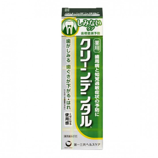 클린 덴탈 S는 파삭 파삭 한 신선한 박하 맛에서 3 종의 살균 성분 및 2 종의 소염 성분, 또한 불소 나 제올라이트 등 클린 덴탈 L (레드)와 같은 10 종의 약용 성분에 더욱 지각 과민 증상 이가 스며드는 것을 방지 질산을 추가 배합하여 11 종의 약용 성분으로 잇몸 질환이나 충치는 물론, 지각 과민 증상도 예방합니다.