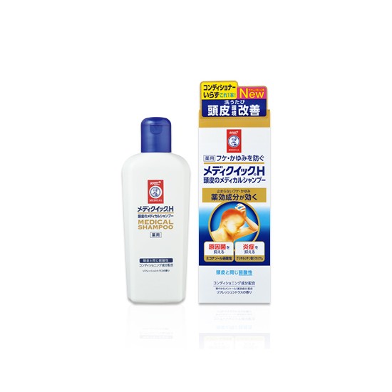 - "메디퀵 H 두피 메디컬 샴푸 '는 비듬,가려움증의 원인균의 증식을 억제하는 항 곰팡이 성분 (미코나졸 질산염)과 염증을 억제하는 항 염증 성분 (글리시 리진산, 칼륨)을 배합 한 약용 샴푸입니다.